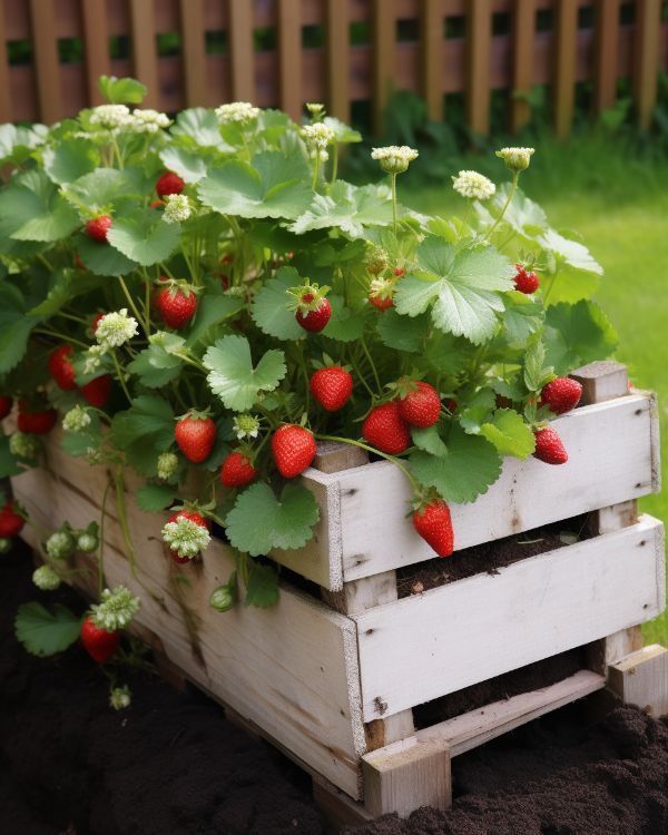With just a few tools and some basic woodworking skills, you can transform a wooden pallet into a functional and visually appealing planter that accommodates multiple strawberry plants. Whether you have a balcony, patio, or small backyard, this DIY project offers a sustainable and space-efficient solution for growing strawberries. The benefit of a DIY container is that you can customize the look and feel to your specific needs! So, here we go: